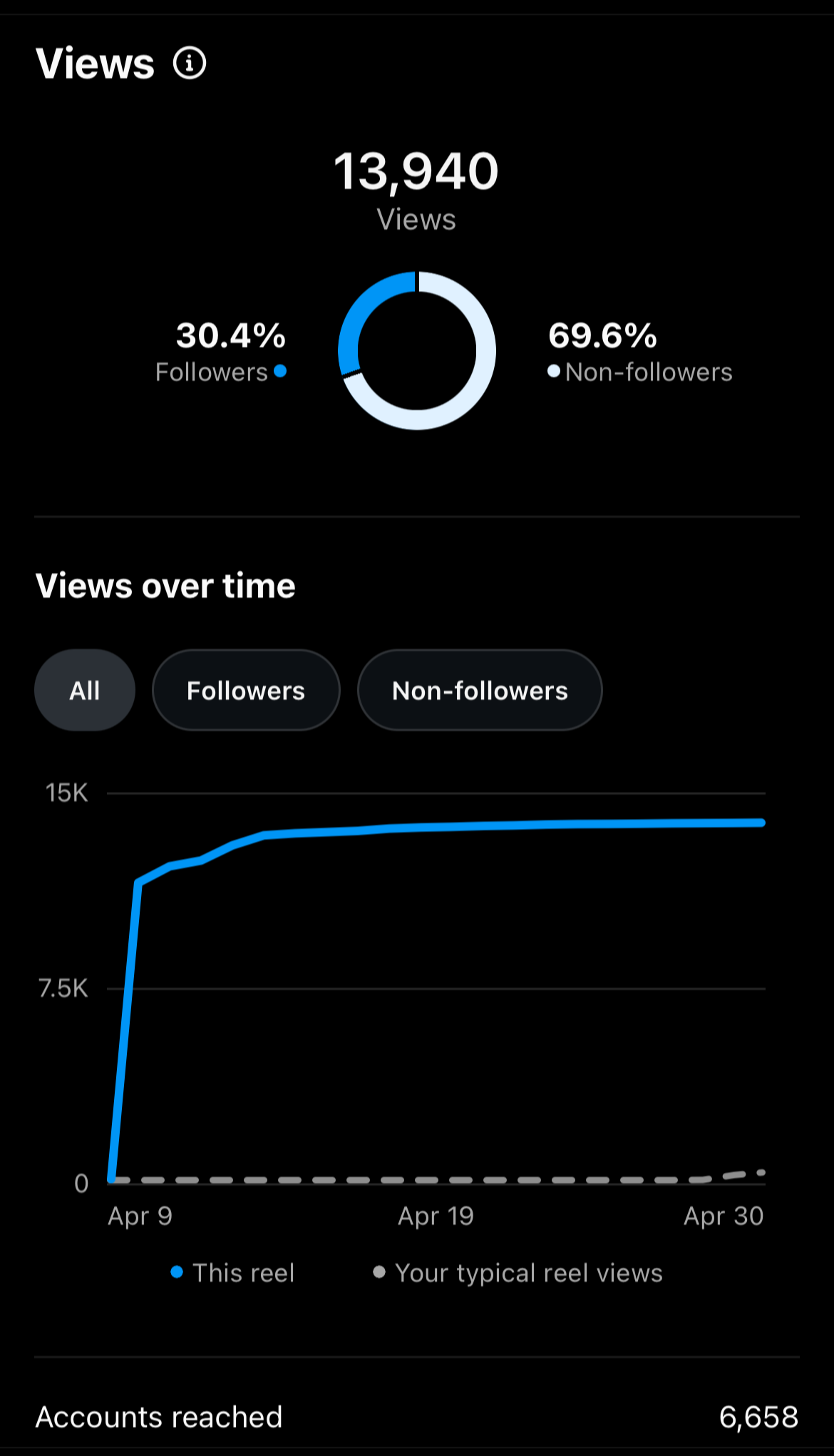 The most growth I saw in our socials in this position was when I posted video content. My highest performing reel was posted in April, and reached 13.9k views (over 3x the size of our student body.) The reel got 366 likes and had a 6.9% view rate increase compared to a typical reel. This was the account’s most viewed reel for 9 months and gained the account 5 new followers.